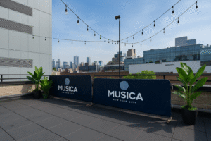 Elevate your next event—literally—on the Musica Rooftop. Surrounded by the NYC skyline, this open-air terrace is made for bold, memorable experiences: morning brand activations, stylish cocktail hours, wellness retreats, or summertime company parties. With its indoor-outdoor flexibility, all-weather setup, and stunning views, the rooftop offers unmatched versatility for corporate planners looking to inspire and engage. Equipped with its own bar, lighting system, and AV capabilities, this rooftop oasis turns any professional event into a standout moment. Ideal for entertaining clients, rewarding teams, or launching your next big idea with Manhattan as your backdrop.